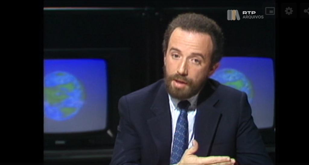 Pedro Santana Lopes, aos 31 anos, foi o primeiro vencedor das primeiras eleições para o Parlamento Europeu em Portugal, no ano de 1987, obtendo 37,45%. Mas a sua vitória foi ofuscada por coincidir com as eleições legislativas, onde Cavaco Silva ‘cilindrou’ a oposição, conseguindo uma maioria absoluta com 50,2%. Imgem: RTP Arquivo (debate contra Maria de Lourdes Pintasilgo)