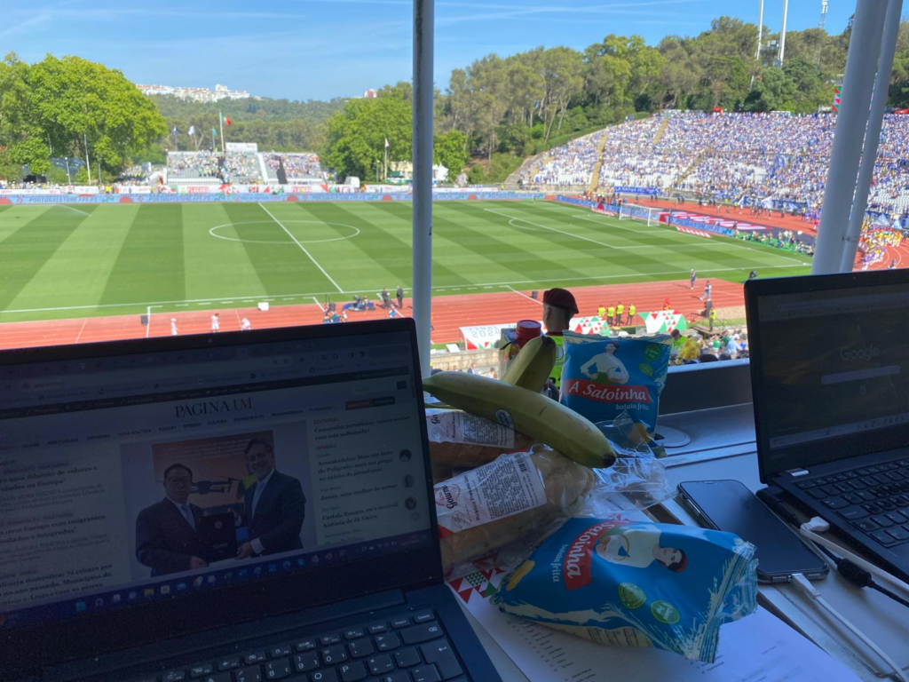 Uma tesoura da prestigiada marca luso-canadiana Stephen Eustáquio ainda cortou a relva num esforço inglório. De igual modo, o desesperado guarda da baliza adversária mergulhou como um perdido naquele rio selvagem. Debalde de água fria para ambos. Fatal como o destino, um filhote de leão em forma de bola voadora cruzou a grande área feito um raio e resolveu o clássico. Tendo eu gritado antes do tempo, já nem festejei o golo. Pensei antes em resgatar de imediato a reputação e a aparência de imparcialidade entre camaradas jornalistas.