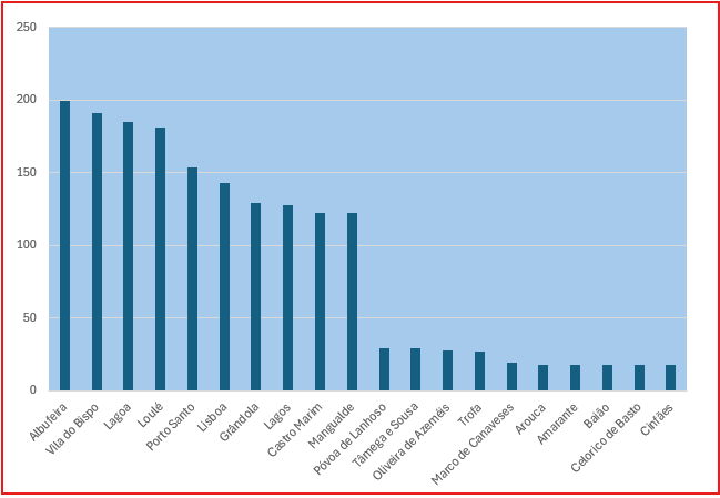 Não surpreende assim que, embora em alguns casos haja ‘responsabilidades’ nas perdas de água nos sistemas de abastecimento, a generalidade dos municípios com maior volume de água distribuída sejam de zonas de grande actividade turística, designadamente na região do Algarve, no Porto Santo (Madeira), em Lisboa e em Grândola.