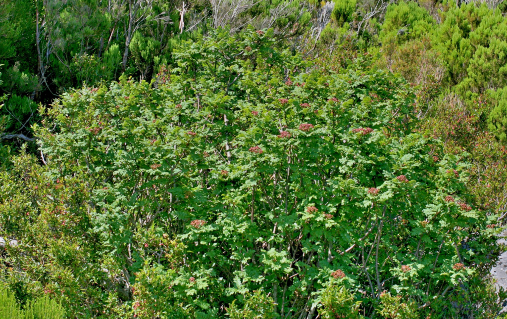 Arbusto de alta montanha. Tem umas bagas vermelhas semelhantes às do azevinho. Os fogos e a pastorícia reduziram a população da sorveira a cerca de trinta exemplares, os quais estão sobretudo localizados no pico dos Melros e Chão do Areeiro, em zonas de escarpa.