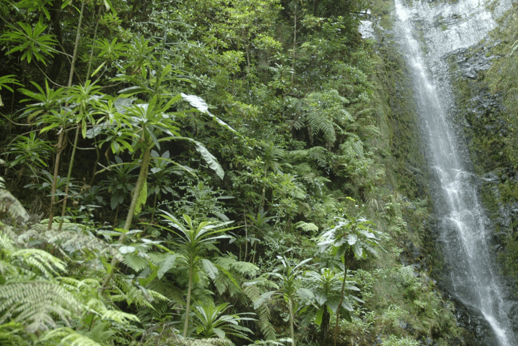 Acompanhados por Susana Fontinha e dois técnicos do parque natural, pedimos – porque é proibido, sem autorização – para ir ver de perto uma cascata no interior da floresta. É mais uma cascata, mas nunca é de mais ver mais uma. São trezentos metros de puro êxtase. É impossível seguir em linha recta, porque o ribeiro contorce-se entre as rochas e as árvores – com os troncos cheios de outras plantas, musgos, líquenes e fungos – quase formando uma parede intransponível. Alguns ramos aparentemente viçosos partem-se ao menor toque. Apenas as pedras no leito do riacho se vêem; as outras estão completamente atapetadas de um manto espesso de musgos e líquenes. A falésia desta cascata é mais um ponto de assombro. Não é por estar coberta de vegetação, mas sim por ter várias árvores de mais de uma dezena de metros que cresceram com o fuste perfeitamente paralelo ao solo. Como se, para elas, o chão fosse a parede do penhasco.