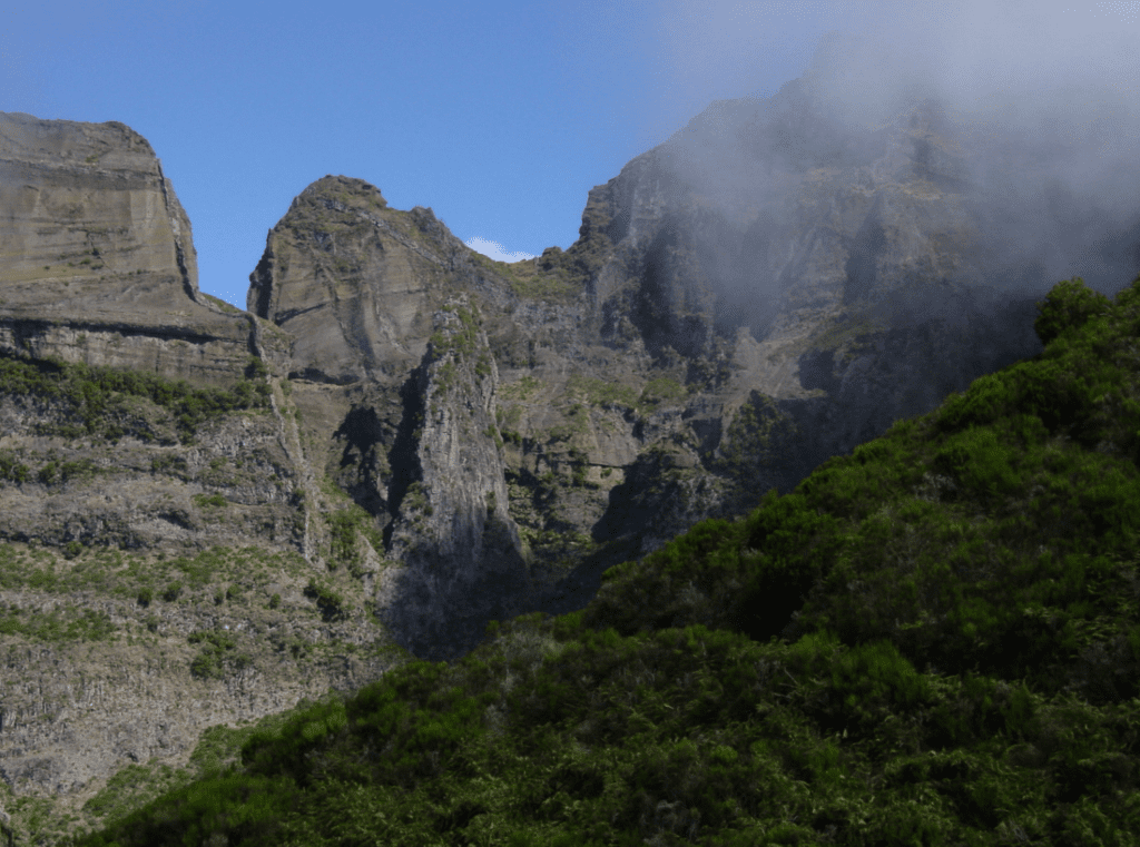 Quer-se ver todos os pormenores: o pequeno lago profundo criado pelas quedas de água, as tonalidades avermelhadas de algumas rochas e aquela árvore que abraça um pedregulho colossal numa perfeita simbiose para que ambos não caiam. Mas aquilo é apenas o cartão-de-visita. Lá mais para cima, dizem-nos, por detrás das nuvens, está o éden. Chamam-lhe floresta laurissilva.