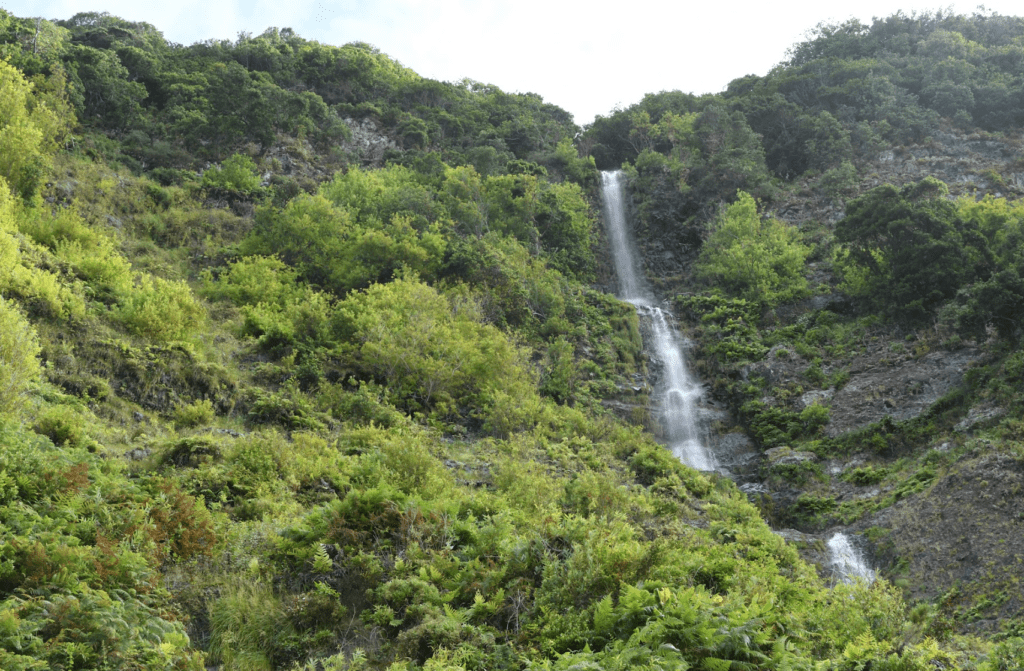 Apesar dos seus reduzidos 737 quilómetros quadrados – menos de nove vezes a cidade de Lisboa –, qualquer sítio parece longínquo nesta ilha. Sempre a subir, o jipe percorre uma estrada que serpenteia por onde pode – dois terços da ilha têm declives superiores a 25 por cento –, passando uma mancha urbana disforme e mais à frente áreas de pinheiros e eucaliptos, duas espécies importadas para esta região. À central de incineração de lixos, recentemente inaugurada, que lança um suspeito fumo negro, acentua-nos as dúvidas sobre a existência do tal paraíso.