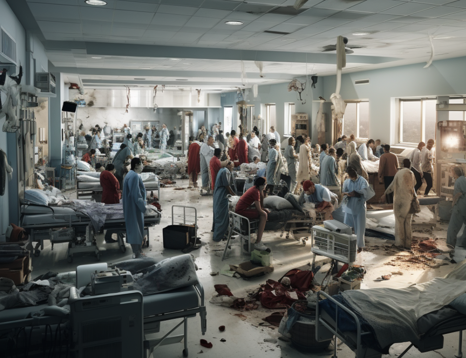 Retrato do Midjourney imaginando um hospital caótico em Portugal.