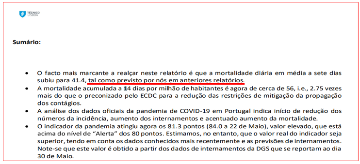 De acordo com as notícias, que citaram um relatório então não tornado público, “houve cerca de 242 mil casos de covid-19 registados oficialmente devido às festividades dos santos populares e festivais como o Rock in Rio”. A notícia da Lusa salientava ainda, citando o relatório do IST, que “se juntarmos os casos não reportados oficialmente atinge-se o número de 340 mil”. E apontava ainda, expressamente, para as consequências: 790 óbitos devido ao levantamento das restrições e 330 óbitos associados apenas às festas populares de Junho.