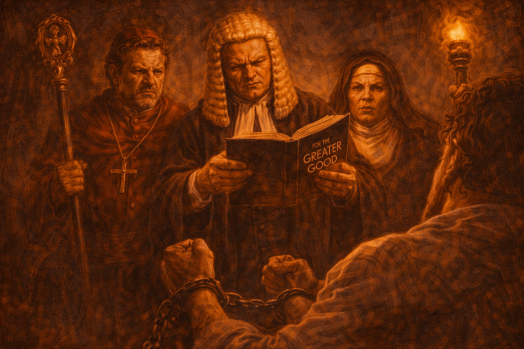 O primeiro elemento desta falácia reside na própria ambiguidade da categoria “bem”. O bem para quem? Em que circunstância? Com que fundamento? A História Política está repleta de atrocidades justificadas por uma noção de “bem” definida pelos vencedores, pelos dominantes ou, mais frequentemente, pelos auto-iluminados. O bem, enquanto categoria moral, é algo sempre disputável — e deve sê-lo. Quando se absolutiza uma determinada concepção de bem, suprime-se a política enquanto campo de debate e substitui-se por uma espécie de teologia cívica, onde o herege é expulso sem direito a contraditório.