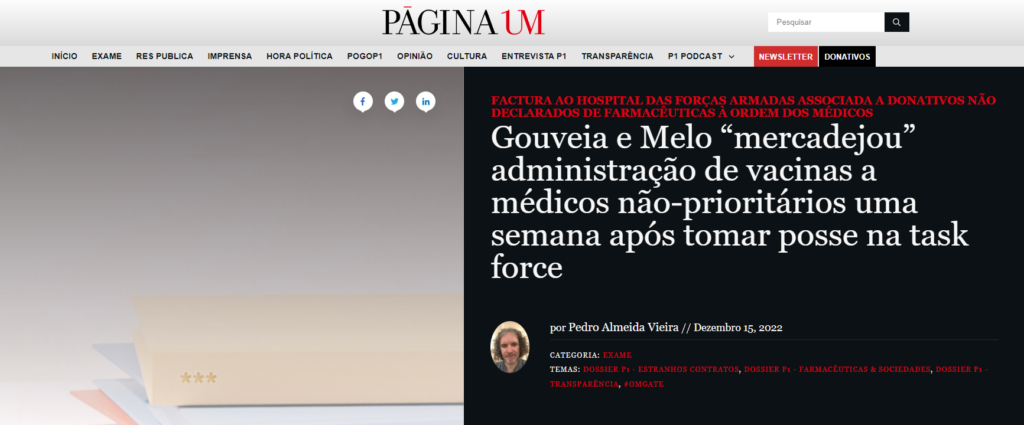 Mas vai fazer agora, mas ao contrário, tal como já fez com as acusações de Gouveia e Melo, e de mais outra da Ordem dos Médicos (em ‘parceria’ com Miguel Guimarães, Filipe Froes e Luís Varanda) e ainda outra do médico e ‘humanitarian doctor’ Gustavo Carona. Porque, nesses casos, achou por bem acompanhar as acusações, porque é muito mais fácil: basta em meia-dúzia de linha seguir o que dizem os queixosos. Aliás, num dos processos, a magistrada até escreve que o PÁGINA UM é um jornal de se vende em banca, o que exemplifica o grau e qualidade da investigação do Ministério Público…