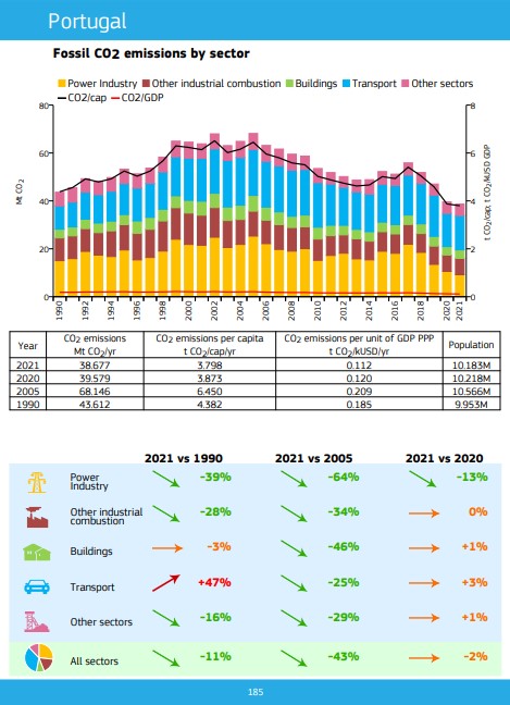 Foi, segundo parece indiciar o Público, culpa dos cidadãos do “país pequeno”, que não estão a contribuir o suficiente para o “esforço global de mitigação e adaptação”? É mesmo culpa de Portugal, desse “país pequeno”, que ainda se tem de se sacrificar mais, mesmo se, entre 2005 e 2021, conseguimos uma redução de 57%?