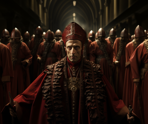 Pedi ao Midjourney para imaginar o Cónego Guca Stavorona na Inquisição Espanhola.