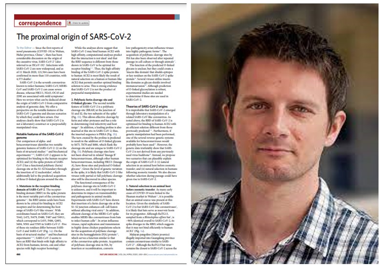 Em três páginas apenas, acompanhadas por um gráfico, o artigo de Kristian Andersen “oficializou” a origem natural como causa do surgimento do SARS-CoV-2, refutando todas as hipóteses, que a imprensa mainstream tratou de descredibilizar. O artigo tem, neste momento, 5.599 citações científicas. E agora?