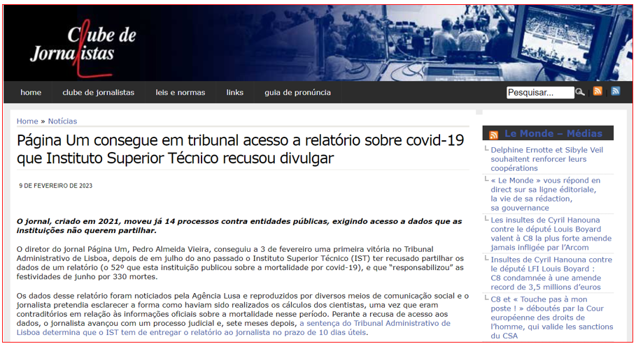 Começou em Agosto do ano passado através de um vergonhoso parecer ou recomendação – aparentemente nunca feito para outro jornalista (essa é uma das questões que a CCPJ não pretende esclarecer, mesmo depois do parecer da CADA) –, assinado por Licínia Girão e Jacinto Godinho, a pedido de António Morais, presidente da Sociedade Portuguesa de Pneumologia por causa de notícias publicadas pelo PÁGINA UM.