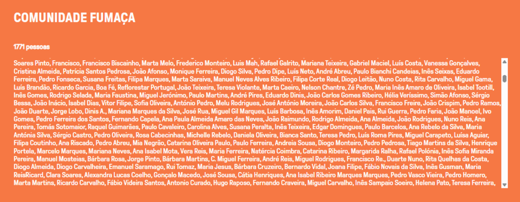 Entre os 1.771 patronos do Fumaça orgulhosamente listados, figuram nomes de peso: um simplesmente “Francisco” (quiçá, o falecido Papa), um “João Afonso” (não, não é o da canção, é um outro que qualquer pessoa conhece), um “Boa Fé” (primo afastado do Boa Morte, o futebolista?), um “Zé Pedro” (não o dos Xutos, que esse jaz há quase oito anos no cemitério dos músicos imortais), e um impenetrável “Dinis A.” (que dispensa apresentações, pois “todos sabem quem é”).