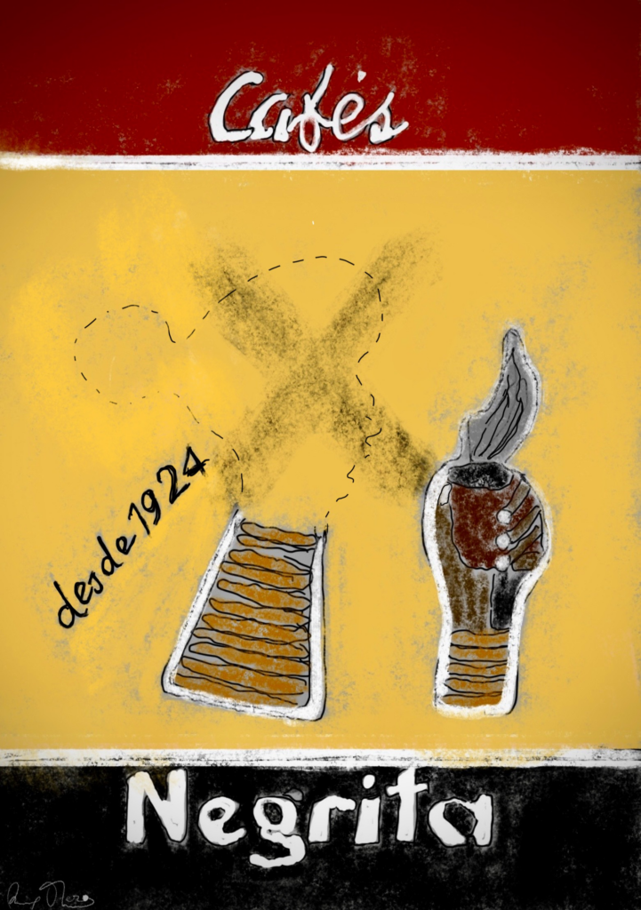 Ilustração de Ruy Otero e Bruno Cecílio, a partir da identidade visual da marca de cafés Negrita.