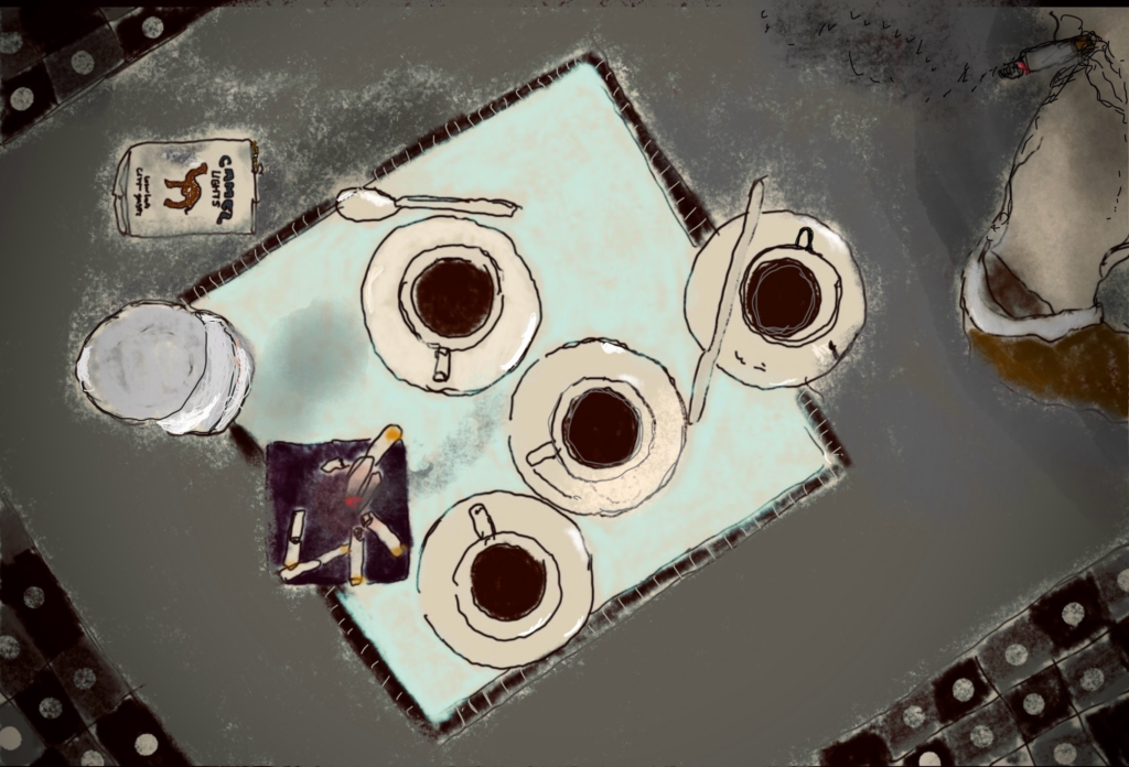 Ilustração de Ruy Otero e Bruno Cecílio a partir do filme Coffee and Cigarettes.