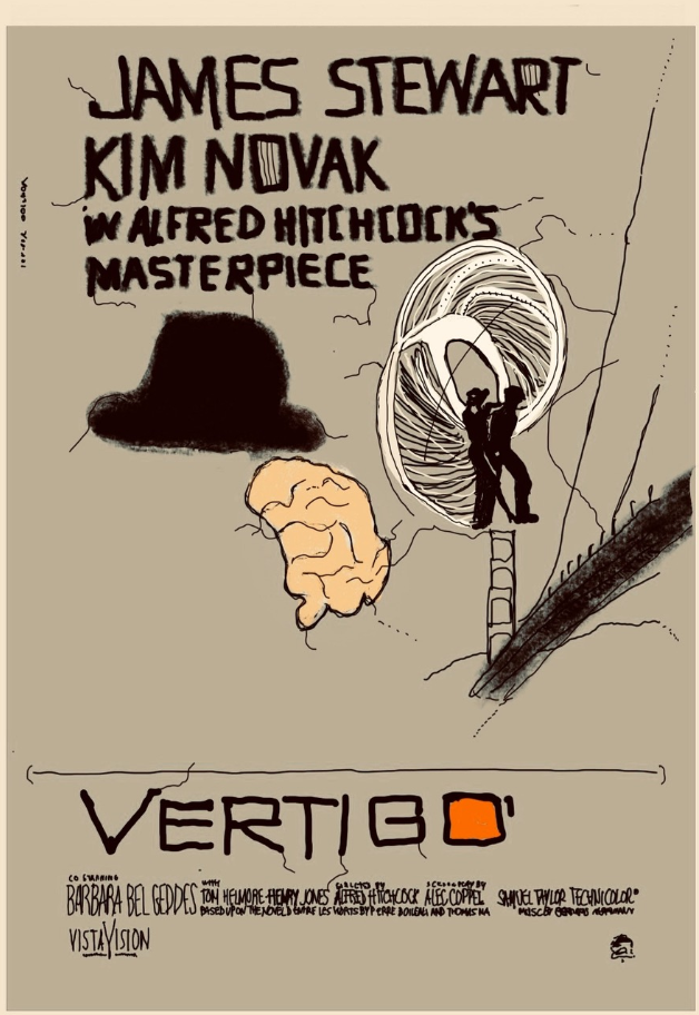 Ilustração de Ruy Otero a partir do cartaz do filme Vertigo de Alfred Hitchcock