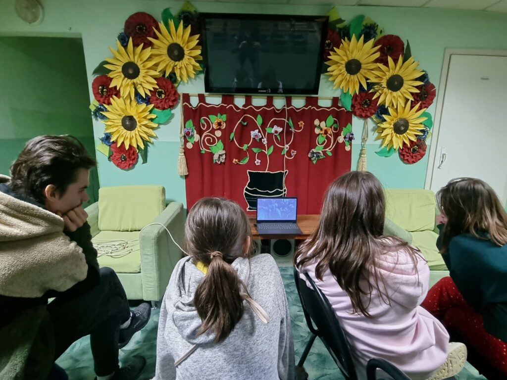 Num dos quartos do orfanato, Andrii Mudrak e as crianças que acompanha viam um filme. No dormitório, um grupo de meninas disputava agressivamente a atenção dos visitantes. Um menino estava a perseguir um cão velho malhado pelo corredor. As paredes das salas sufocantes estavam cobertas de rabiscos e desenhos. Assim como em outros lugares da Ucrânia, o orfanato foi muito afectado, em termos de electricidade e de aquecimento, dados os constantes ataques russos à infraestrutura energética.