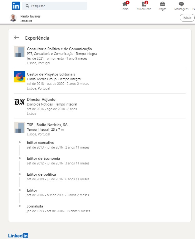 Apesar disso, Paulo Tavares continua a manter-se ligado à comunicação social de uma forma ambígua (assumindo-se como jornalista), através da sua empresa unipessoal, a PTS (iniciais de Paulo Tavares Sardinha), constituída em Dezembro do ano passado para a “prestação de serviços de consultoria política e assessoria de imprensa, e de consultoria editorial”, bem como “produção, gestão e apresentação de eventos” e ainda “produção e realização de programas de rádio e televisão” e ainda “edição de revistas e outras publicações não periódicas”.