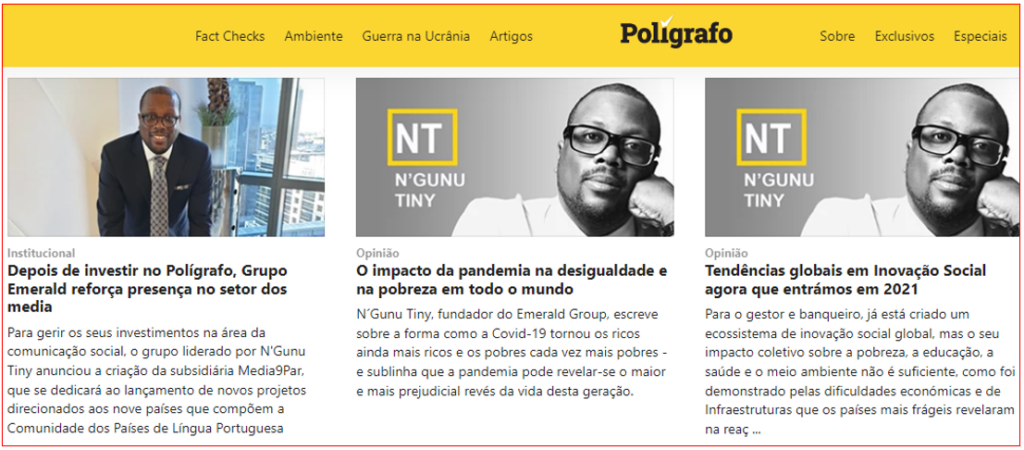 Neste grupo económico controlado por N’Gunu Tiny, Fernando Esteves acumula agora as funções de director do Polígrafo com as de publisher das publicações, colocando-se assim numa situação de grande ambiguidade. Até porque o Polígrafo, bem como o Viral (dedicado à verificação na área da saúde), se mantêm fora do novo grupo de comunicação social de N’Gunu Tiny, embora sejam apresentados como “parceiros”.