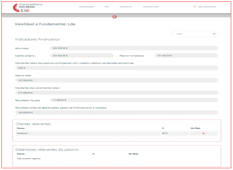 O portal da ERC impõe que as empresas de comunicação social identifiquem os clientes que representem um volume de receitas superior a 10% do total, o mesmo sucedendo para o caso dos detentores de mais de 10% do passivo. O objectivo é mostrar dependências financeiras que possam colocar em causa a liberdade editorial.