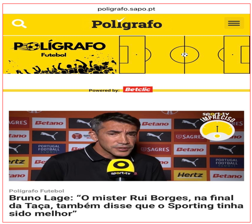 Desde esta semana, através de uma “parceira exclusiva”, o principal verificador de facto em Portugal criou o Polígrafo Futebol, fruto declarado de uma parceria comercial. Confrontado com questões do PÁGINA UM, o director do Polígrafo e gerente da empresa Inevitável e Fundamental, Fernando Esteves, recusou esclarecer os termos da parceria com a Betclic, incluindo os montantes envolvidos.
