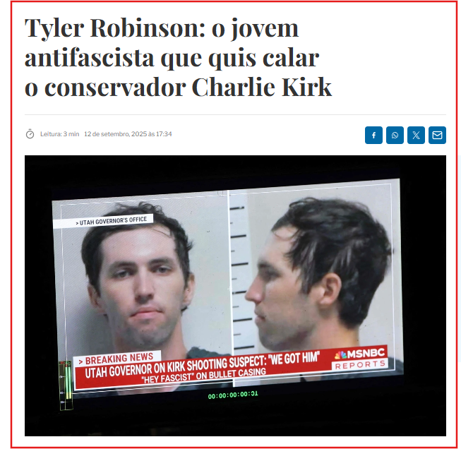 Em Portugal, diversos meios de comunicação social têm mostrado falta de rigor na descrição de Kirk mas também do seu alegado assassino. Por exemplo, numa notícia publicada ontem no Jornal de Notícias, assinada pela jornalista Rita Salcedas (CP 7547) — que tem um número de carteira profissional recente —, o título escolhido foi “Tyler Robinson: o jovem anti-fascista que quis calar o conservador Charlie Kirk”.