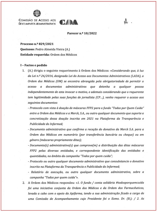 Saliente-se que o PÁGINA UM solicitou, no final do ano passado, o acesso a todos os pareceres dos Colégios da Especialidade da Ordem dos Médicos. No entanto, Miguel Guimarães não acedeu ao pedido, tendo a Comissão de Acesso ao Documentos Administrativos dado razão ao PÁGINA UM, mas em moldes dúbios, e para os quais foi pedido uma clarificação que ainda não foi concluída.