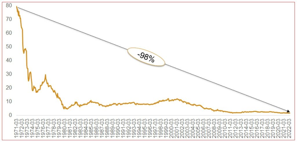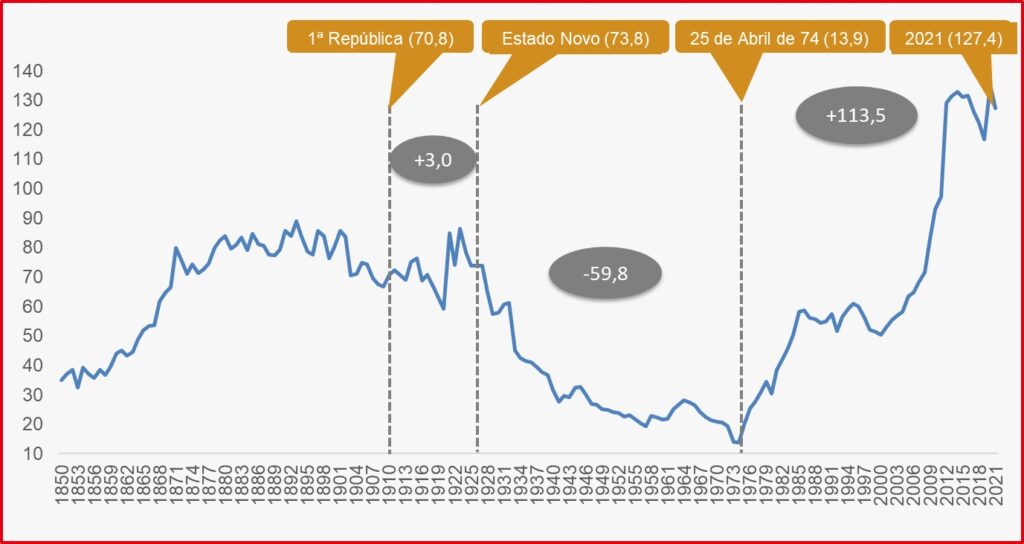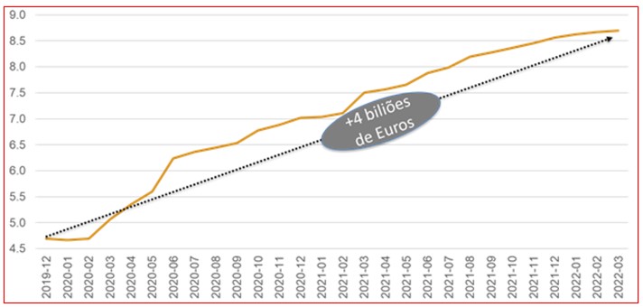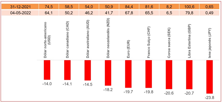 Este movimento é agravado pela desvalorização do Euro: no presente ano regista uma queda superior a 2% em relação ao USD, adicionando-se à desvalorização de cerca de 8% em 2021.
