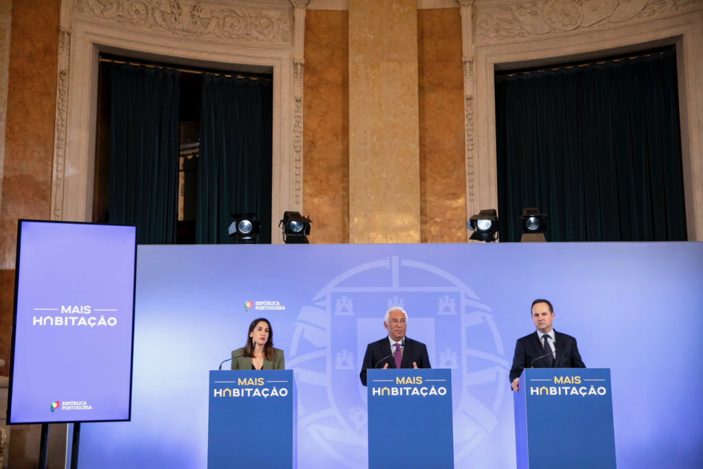 Marina Gonçalves, ministra da Habitação, António Costa, primeiro-ministro, e Fernando Medina, ministro das Finanças, na apresentação do pacote legislativo para a habitação na passada quinta-feira.