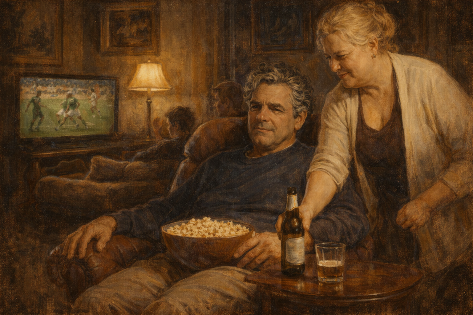 Joaquim Braga, que passara sua vida trabalhando sempre até muito tarde, sonhava em desfrutar os mais inocentes prazeres da noite. Desejava, acima de tudo, entronizar-se numa poltrona para, rodeado por mulher e filhos, cervejinha no copo, bacia de pipoca no colo, assistir a um bom jogo de futebol pela televisão. Gostaria também de poder caminhar de mãos dadas com Glória, sem pressa, num shopping center.