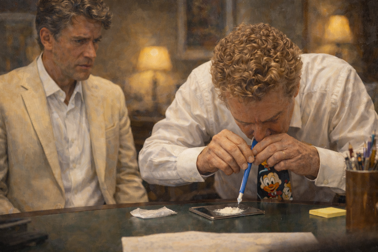 O Chefão era aloprado. Certa vez, entrou apressado na sala de Braga pediu um espelho de bolso e uma esferográfica comum. Atendido, abriu um pacotinho minúsculo e despejou o pó branco que havia nele sobre o espelho. Com mãos trêmulas, retirou a carga da caneta. Por fim, debruçando-se sobre a mesa, aspirou o pó.