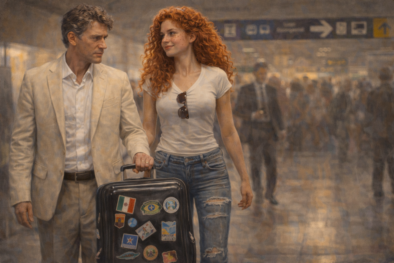 Braga recebeu a moça no aeroporto, fez questão de carregar-lhe a mala. De início, sentiu-se um pouco constrangido em caminhar ao lado de uma jovem tão bonita, mas, aos poucos, percebendo os olhares invejosos dos homens, animou-se.