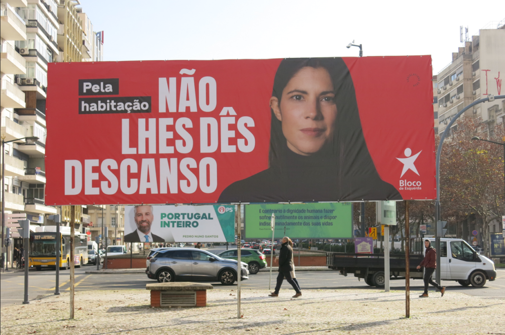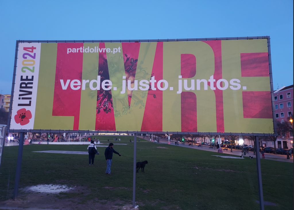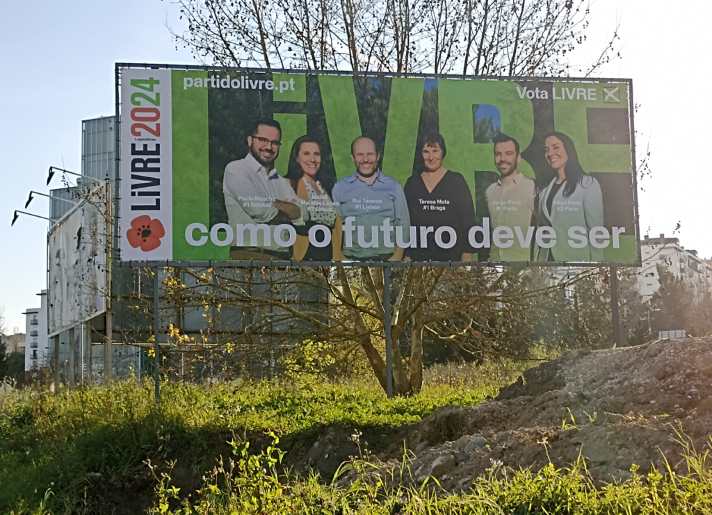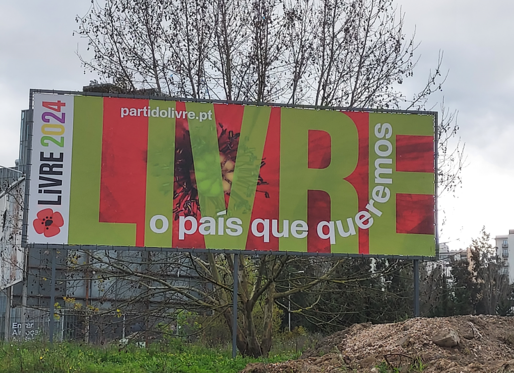 O motivo mais disseminado pelo espaço público é o mupi verde com o retrato sorridente da líder ao lado de um headline que se assemelha a um balão de fala das BD a clamar: ‘Avançamos, pelas Causas’. O fundo verde mentol que alude à natureza é mais do que expectável, porém esta é também a cor escolhida pelo PS, o que acaba por não ser distintivo e comprometer a desejada rápida identificação.