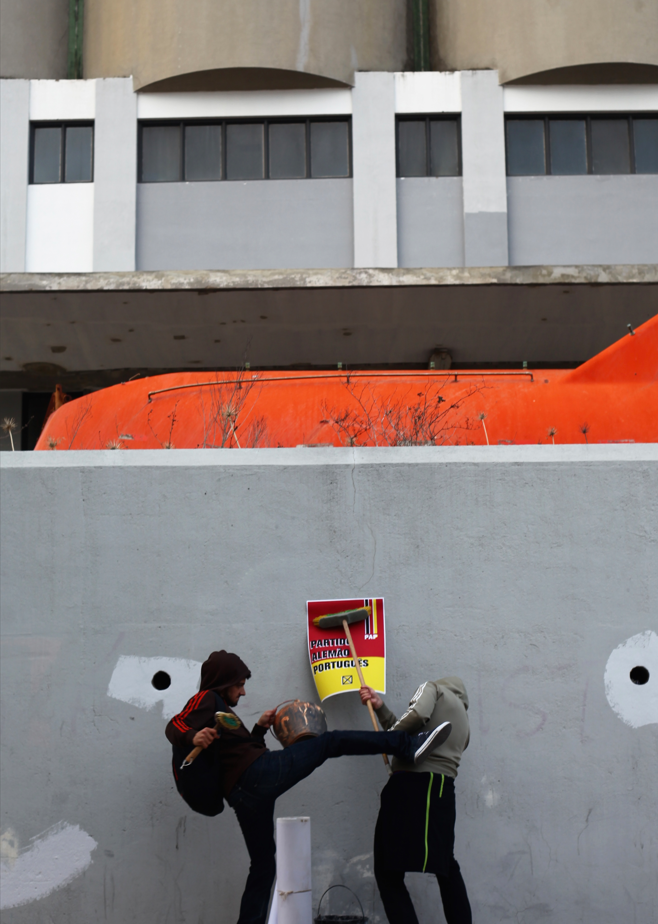 “Touradas só na cama e com consentimento” é a mensagem desafiadora que o partido lançou mais recentemente nas proximidades do Campo Pequeno. Apesar de adoptar uma linguagem próxima do tríptico da Calçada de Carriche, confunde-se ao longe com um anúncio do IKEA não só pelo fundo branco como pela fotografia da cama de casal de design neutro, não conseguindo assim assegurar uma coerência gráfica com os restantes motivos que estão na rua.