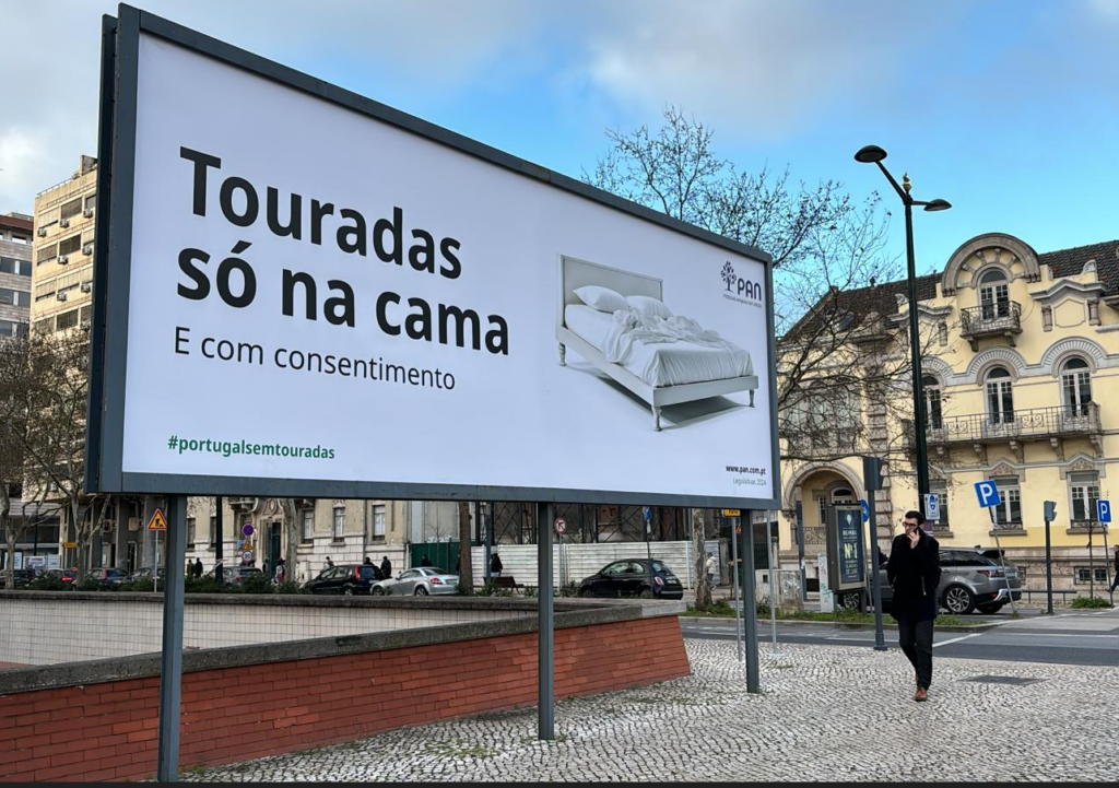 Para instigar a polémica mediática, o partido procurou amplificar o seu impacto com a distribuição de uma nota de imprensa de maneira a contrabalançar as limitações da sua visibilidade nos debates televisivos de formato compacto. O candidato com mais horas de direito de antena terá possivelmente sido o Ricardo Costa, do “partido SIC”. Terá sido a eficácia da última campanha desta marca sueca que convenceu o PAN a relançar o debate aceso em torno da abolição das touradas com um outdoor afixado nas redondezas da praça de touros? Subjacente está o desejo de acabar com o financiamento público (que se eleva em 19 milhões de euros) desta prática cultural enquanto acto gratuito de crueldade animal. Uma forma de contestar as políticas vigentes e sublinhar a sua força como partido animalista, o que de certa forma segue a abordagem populista tão em voga.