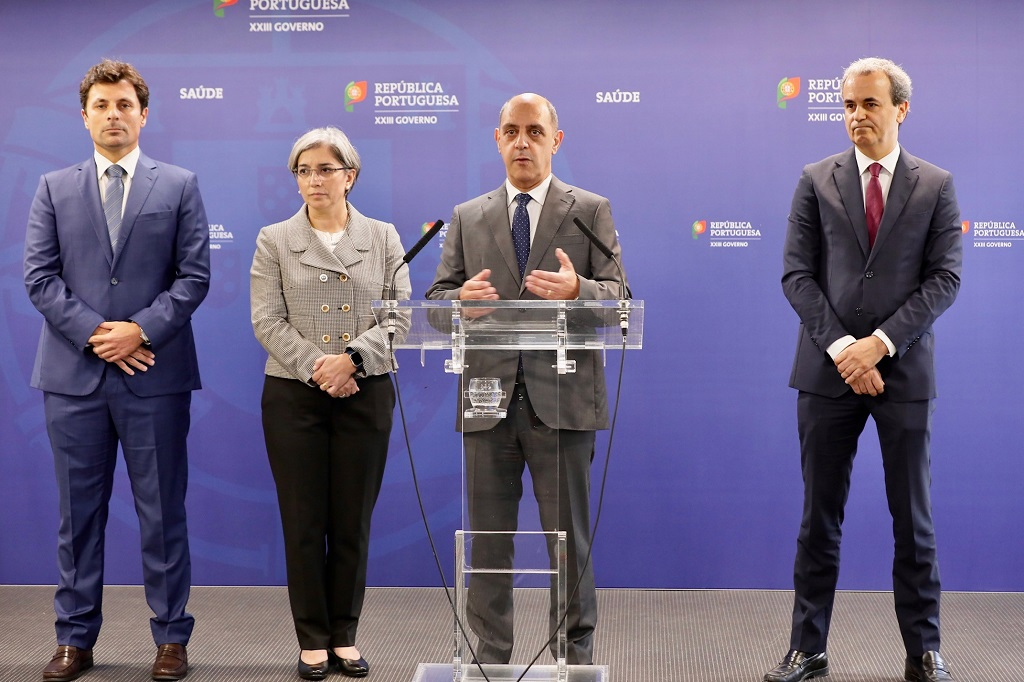 Fernando Araújo, director executivo do Serviço Nacional de Saúde, à esquerda de Manuel Pizarro, ministro da Saúde.