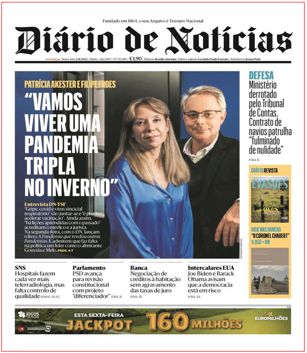 Em 4 de Novembro do ano passado, o pneumologista Filipe Froes ‘anunciava’ no Diário de Notícias a iminência de uma pandemia tripla: gripe, covid e vírus sincicial respiratório (VSR). Falhou triplamente, mas contribuiu para o alarmismo e para alcandorar a VSR ao estatuto de grave problema de Saúde Pública.