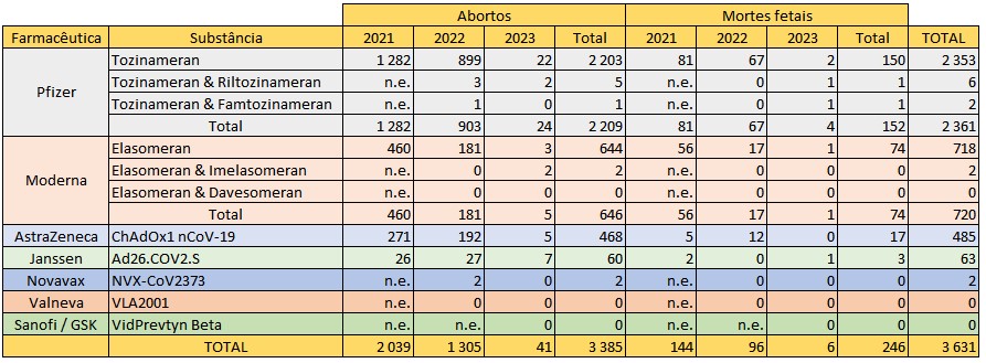 De acordo com a análise individual do PÁGINA UM às 5.336 reacções graves em grávidas desde 2021 – a base de dados da Eudravigilance apenas permite descarregar em formato de folha de cálculo uma síntese das notificações –, aparecem 3.385 abortos (a esmagadora maioria com a indicação de serem espontâneos) e mais 246 mortes fetais desde Janeiro de 2021. Ignora-se a distribuição por países.