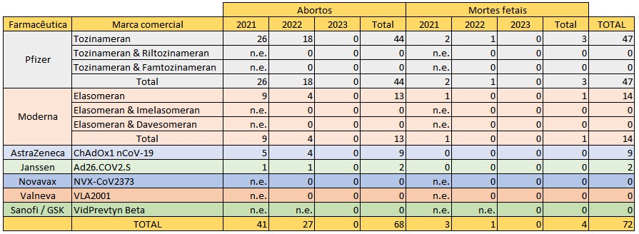 Mais uma vez, como referido para os casos graves totais, não se mostra possível aferir qualquer sinal sobre o perfil de segurança de cada uma das vacinas, mas tudo aparenta que existam diferenças significativas. Por outro lado, aparentemente, a diminuição de mortes de crianças antes do nascimento entre 2021 e 2022 deverá estar mais associado a uma menor procura de reforços neste segundo ano do que a uma melhoria da segurança. Porém, reitera-se: sem disponibilização de dados fiáveis, a especulação manter-se-á sempre.