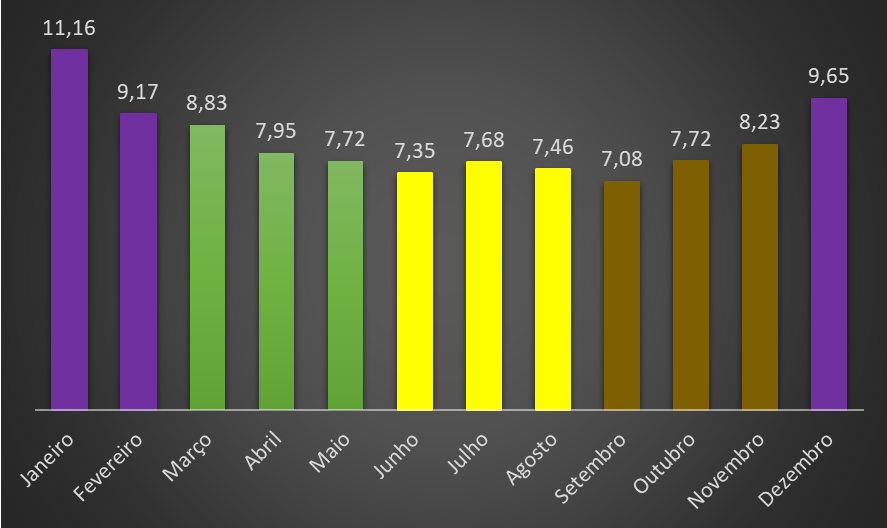 De acordo com uma análise do PÁGINA UM, no período de 2013-2022 o mês de Setembro contabiliza 7,08% das mortes, seguindo-se Junho (7,35%) e Agosto (7,46%). Os piores meses são os considerados de Inverno: Janeiro (11,16%), Dezembro (9,65%) e Fevereiro (9,17%).