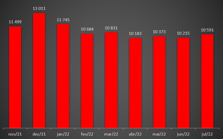 Por exemplo, no dia 1 de Junho a média móvel de sete dias estava nos 24.602 casos positivos para todo o país, no dia 8 tinha descido para 20.575 casos, no dia 15 já estava nos 15.368 casos positivos, no dia 22 baixou para os 12.939 casos positivos e no final do mês estava mesmo abaixo dos 10 mil casos.