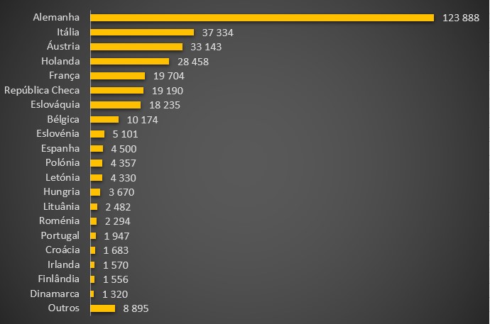 Segue-se a Holanda e a Alemanha a pouca distância uma da outra, com 22.631 e 22.592 comentários, respectivamente. A França conta já com 17.282, e Bélgica e Eslováquia contam, cada, com mais de cinco mil.