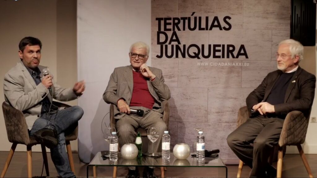 Debate da Cidadania XXI com a presença de Germano de Sousa (ao centro) e José Manuel Silva (à direita), com moderação de Carlos Alberto Gomes, colaborador do PÁGINA UM (à esquerda)