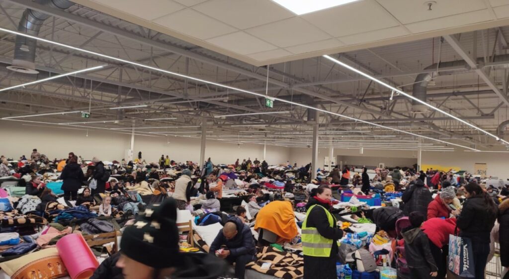 Refugiados ucranianos num centro de refugiados junto à fronteira polaca.