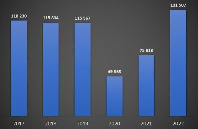 Somatório dos episódios de urgências no período 15-21 de Março entre 2017 e 2022. Fonte: SNS