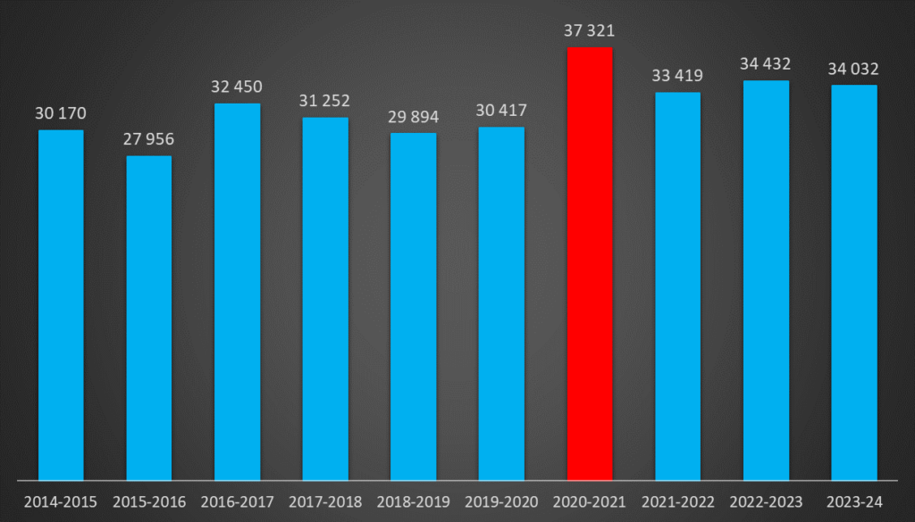 Em todo o caso, a faixa etária dos maiores de 80 anos continua a ‘jogar pelo seguro’. Assumindo a população estimada pelo INE, dos cerca de 724 mil portugueses com mais de 80 anos, um total de 449.310 receberam reforço sazonal contra a covid-19 até 21 de Janeiro, ou seja, 62,04%. Saliente-se que, para este número de vacinas (449.310), a DGS indica uma cobertura vacinal de 65,11%, que se deve ao facto de considerar, erradamente, uma população menor do que a estimada pelo INE, erro que se verifica com a generalidade dos outros grupos etários. No caso da gripe, considerando as doses indicadas no mais recente relatório da DGS (537.010), 74,15% dos maiores de 80 anos vacinaram-se contra a gripe.