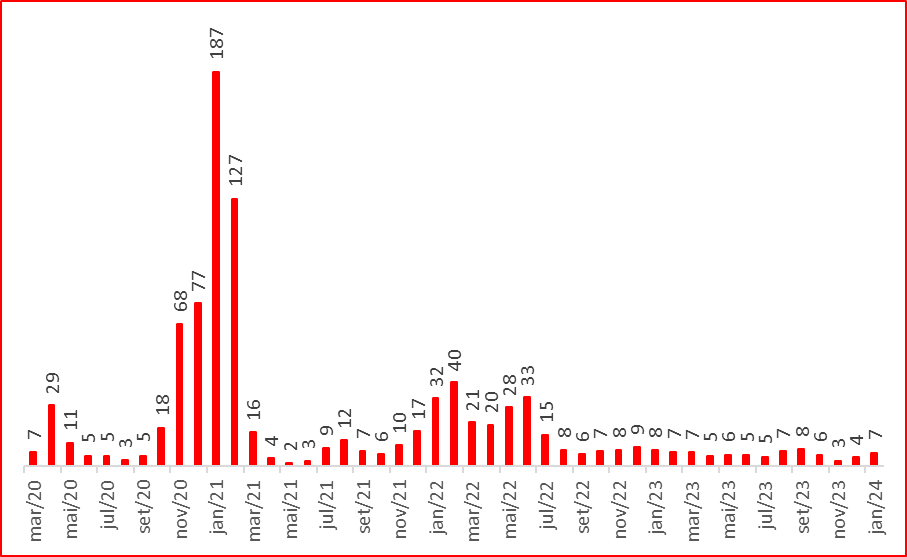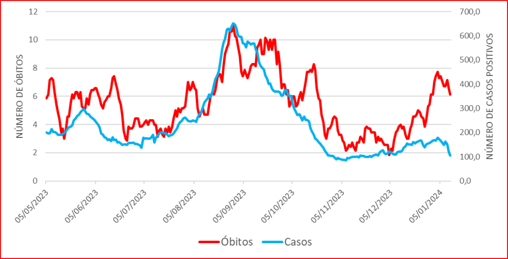Saliente-se que este mês, depois de se ter observado uma mortalidade média diária acima de 500 óbitos até ao dia 11, os registos desceram com a melhoria das condições meteorológicas. Desde o dia 19, o número de óbitos contabilizado pelo Sistema de Informação dos Certificados de Óbito (SICO) estão abaixo da fasquia dos 400, indiciando uma ‘normalização’. Haverá sempre, por certo, quem possa sugerir que foi resultado do apelo de vacinação contra a covid-19, mas, na verdade, a mortalidade para esta doença mantém-se estável desde Agosto de 2022. E se olharmos para os valores deste mês, nada se alterou de forma relevante: entre 1 e 11 de Janeiro, a covid-19 foi responsável por uma média diária de 6,5 óbitos, e entre 12 e 23 de Janeiro situou-se nos 5,8.