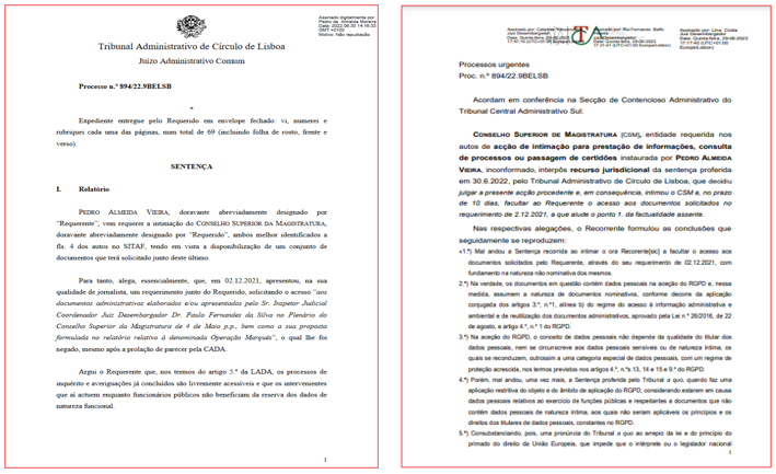 Em 30 de Junho de 2022, a sentença do Tribunal Administrativo de Lisboa deveria ter sido o tira-teimas. acabou assim por comprovar que o CSM, desde o início, estava a alegar com argumentos muito distantes da verdade factual. Na sua sentença, o juiz Pedro Almeida Moreira teceu mesmo duras críticas às alegações do CSM, considerando que “a vingar a interpretação que aqui é propugnada pelo Requerido [CSM], isso significaria que o mero nome de um funcionário público que tenha intervindo num qualquer procedimento administrativo apenas poderia ser tornado acessível aos interessados após a ponderação dos interesses em jogo no âmbito de um juízo de proporcionalidade, o que não se mostra aceitável em face das exigências de transparência que impendem sobre a Administração, nos termos constitucional e infraconstitucionalmente consagrados.”