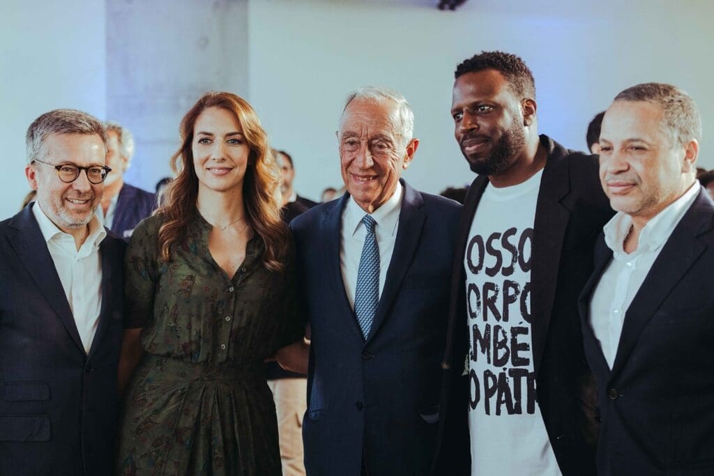 Carlos Moedas (à esquerda) e Marcelo Rebelo de Sousa (ao centro), ‘apadrinharam’ a sessão de apresentação oficial da associação de Dino D’ Santiago (segundo a contar da direita), com sede na casa de Liliana Valente (segunda a contar da esquerda). Foto: D.R./MN.