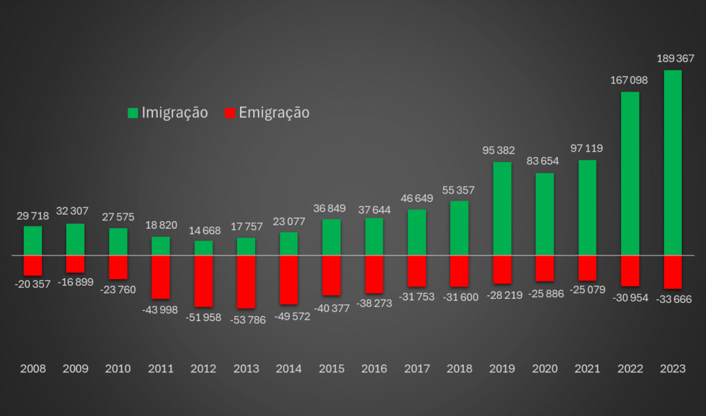 Mas se os municípios das grandes cidades aparentam mostrar um maior grau de atracção, por apresentarem maiores saldos absolutos, o impacte sociodemográfico destas dinâmicas migratórias depende muito da dimensão dos concelhos e da sua atractividade em termos de emprego. Assim, se se considerar a população estimada para o ano de 2023 pelo INE – 10.639.726 habitantes – e um fluxo migratório acumulado (2018-2023) positivo de 445.449 pessoas, pode considerar-se que aproximadamente 4,2% da actual população m Portugal vivia no estrangeiro nos últimos seis anos.