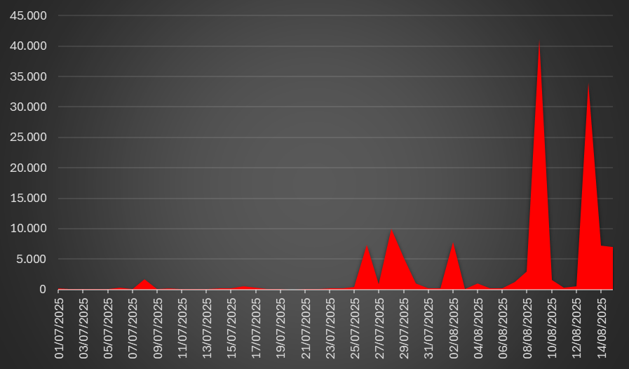 Área ardida por dia desde 1 de Julho de 2025 contabilizada em função da data da ignição. Fonte: ICNF.